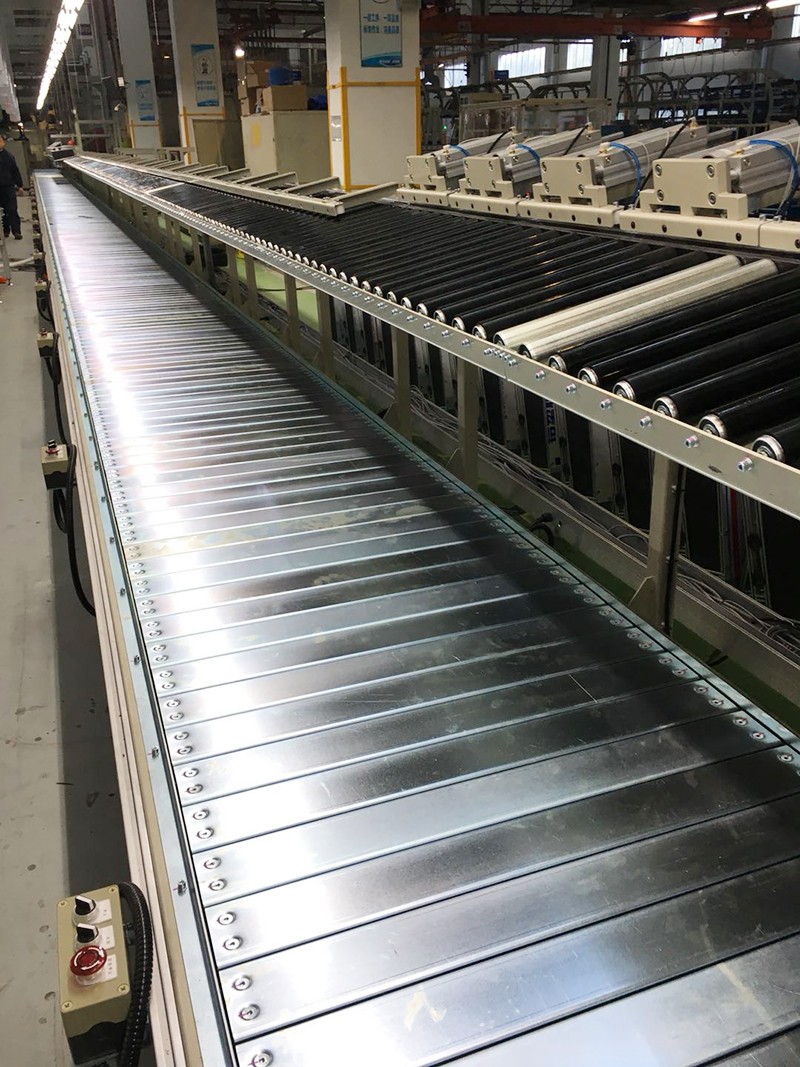 板鏈線由鏈條牽引,承重的鋼板、塑膠板等固定于輸送機兩側(cè)導軌內(nèi)的鏈條上,作為承重機構(gòu)。輕型板鏈輸送機經(jīng)常在家電生產(chǎn)行業(yè)中使用,工位承載能力100KG左右。重型板鏈輸送機常用于汽車制造、農(nóng)機制造等工業(yè)領域,工位承載能力2T。鏈板選擇:碳鋼、不銹鋼、木質(zhì)。